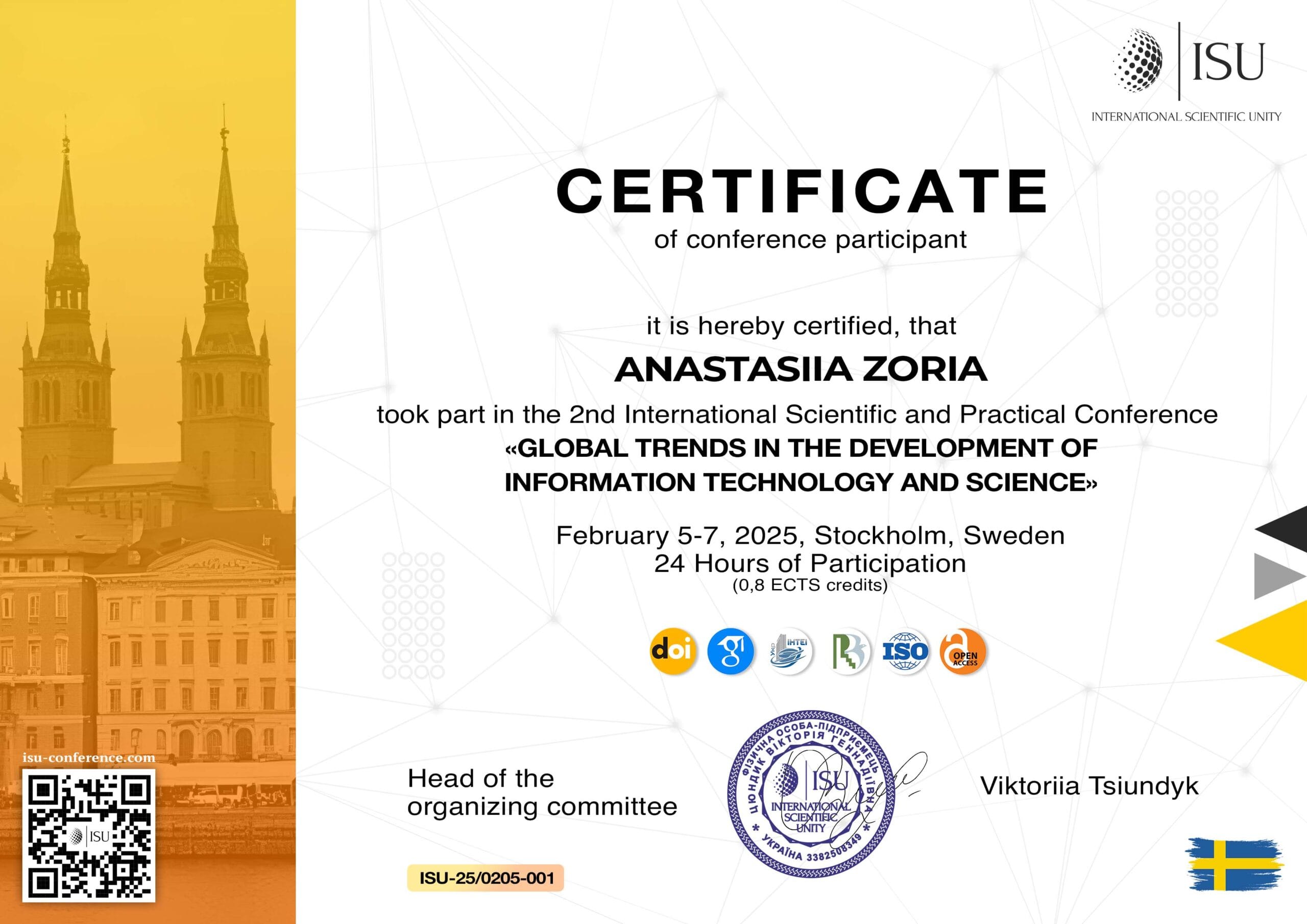 All participants receive a personal certificate, which will certify participation in the international conference, indicating at least 0.8 ECTS credits (24 hours) based on the results of self-education. Certificates will be available for download in the Archives tab.